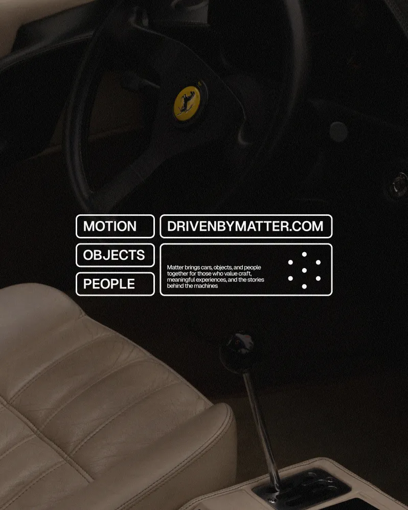 Matter is a passion project quietly taking shape with a group of friends brought together by cars, design, and shared history. I’m shaping the brand strategy, identity, and digital presence, in close collaboration with the people behind it. It’s an exploration of objects, people, and machines that carry meaning over time. More to come.
